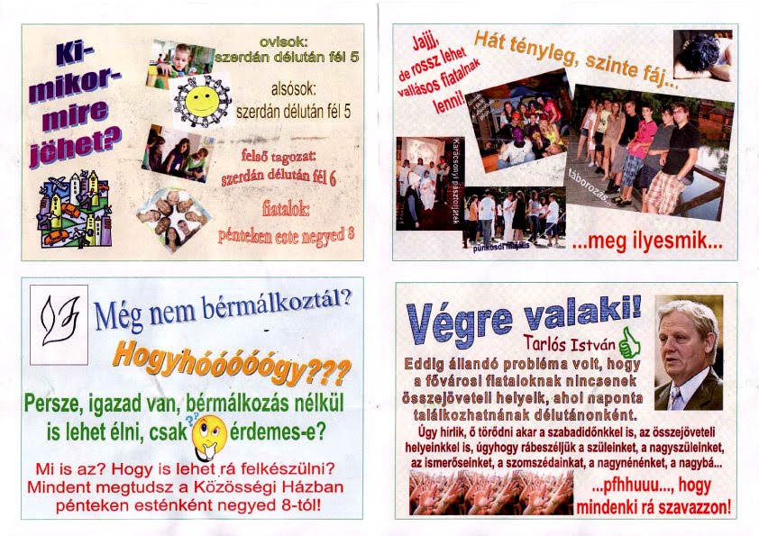 Az azonban egyáltalán nem igaz, hogy csak ilyen Magyarországon kisegyháznak számító egyházak vállalják fel a szegénygondozást, a szegény gyerekekkel foglalkozást. Rengeteg ilyen katolikus intézmény van, amelyek kifejezetten erre szakosodtak, pl. cigánymissziók, amik állami szinten egyáltalán nem léteznek, ha az egyház nem csinálná, nem lenne és kész. Pl. Esztergom vonatkozóan nézd meg ezt a cigánymissziót: www.amihazunk.hu/