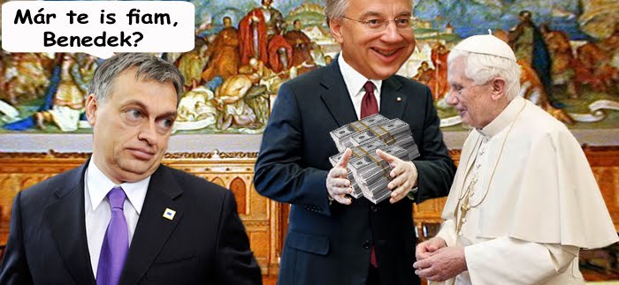 Mert bár a Vatikán is hangsúlyozza, csillagos ötösre sikerült fogalmaznia Horn Gyulának, nagyvonalúbb és méltányosabb nem nagyon lehetne, de...Némi apróért azért lehetne szó az újrafogalmazásról. Kapóra is jön, mert az egykulcsos adórendszeretekkel mindenki jobban jár, azért a katolikus egyház is csak rosszabbul. Így, ha szépen megkértek akkor hajlandóak vagyunk beállni a hazai pénzemberekkel kezdődő, és az IMF-el végződő sorba követelni, hogy töröljétek el, tiltsátok be vagy mittudomén, tegyetek valamit az Isten szerelmére. 500 milliárd kieső adóbevétel után az egy százalékok is rohamosan apadnak, mint Matolcsyban a szellemi kapacitás, és ugyan erővel próbáltok hittéríteni az iskolákban, de a felajánlók száma csak nem nő sehogy.