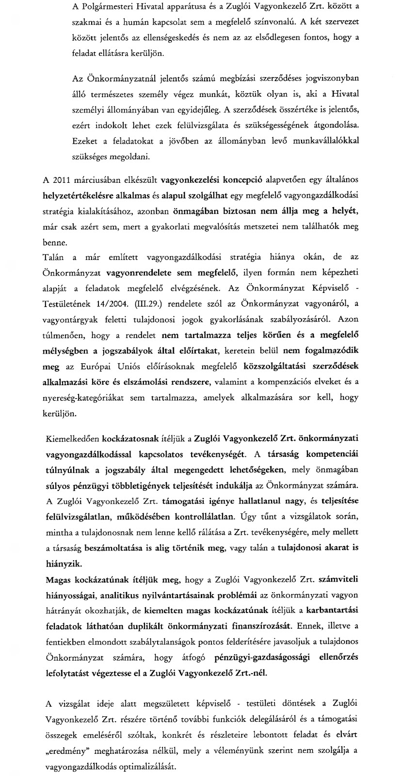 Papcsák működésével és a kerület vagyonának kezelésével nem újkeletűek a problémák. De az eseményeket követőknek is felér egy mellberúgással soktíz oldalon olvasni, mi minden nincs rendeben az önkormányzatnál. Az elemzés teljesen korrekt, felsorolja és figyelembe veszi az elmúlt ciklusból örökölt hiányosságokat, a szomorú az, hogy a megállapításait ezekkel együtt teszi. Azokból meg kiderül, hogy az elszámoltatás volt nincs, és a helyzet nem jobb, hanem sokkal rosszabb lett. Összeollóztam nektek az általam fontosnak vélt megállapításokat, itt van mindjárt a hivatal működésére vonatkozó rész: ( olvasható méretért katt a képre)