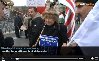 De legalább ekkora örömmel tölt el, hogy a Jobbik szimpatizánsok is sétával támogatják a kormányt, és ebben legalább sorsközösséget vállalnak a romákkal. Én hajlandó vagyok megbocsátani a képen látható néninek a talpig kurultáj sapóban és árpádsávban előadott: esztet a táblát 8 éve csináltam, mostan meg elővettem dumát, bár én határozottan úgy emlékszem ilyen táblák voltak a Jobbik EU ellenes tüntetésén egy hete, de hajlandó vagyok hinni/elnézni a néninek ezt.