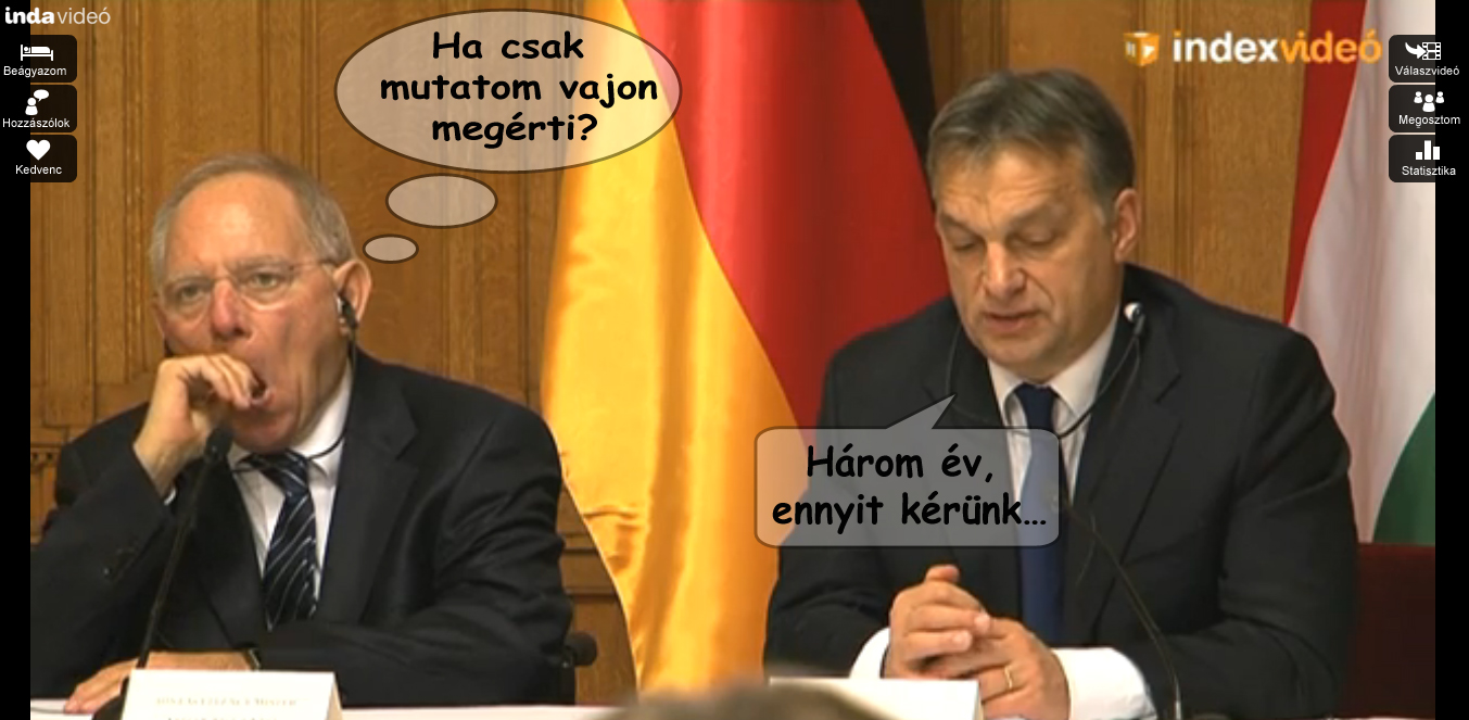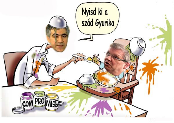 De a Cameron - kezdte, de leintették: Cameron védi a City-t, neki a pénzügyi piacokra is figyelnie kell. Mi az hogy védi a szitit? - sziszegte - adok én nektek olyan szitit, hogy fal adja a másikat! Nekem 19 megyére 23 megyei jogú városom van! Sőőőt, ha akarom 3200 városom lesz és mindet magamról vagy a családtagjaimról nevezem el, a mindeneteket! Az már a kommunizmus határát súrolná, nem? - kérdezte egy hang, mire elgondolkodott és ennyit mondott: háát, talán. Mire fölocsudott Szijjártó már a feléjük tartó EU küldötteknek magyarázta: Orbán Viktor miniszterelnök nem mondott nemet, a hivatalos álláspontja: talánra.