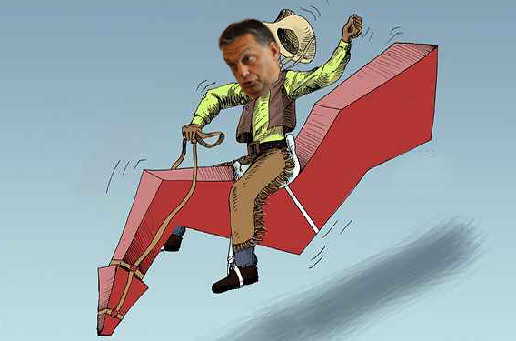 Gondolom az átgondolt adó és gazdaságpolitika naponta változó feltételei mellett azért őszintén csodálkoztak, hogy éves mélypontig zuhant a forint, nőtt az országkockázati felár, és drámaian romlott az ország megítélése. Azt ugyan se itthon, se külföldön nem hitte el a történtek mellett senki, hogy nem lesz másik adókulcs, de legalább ismét erőlködve forgolódtunk kicsit, mint szorulásos turul büszke tölgyfa tetején. Ti tényleg nem érzitek, hogy abba kéne ezt hagyni? A Fidesz hatéves mélyponton, Orbán népszerűtlenebb még soha nem volt a rendszerváltás óta, és a lakosság 69%-a gondolja, hogy amit csináltok ez egy marék tenyérbe izzadt szotyit sem ér. A GDP növekedés nulla, a kiskereskedelem a béka segge alól pislog csak fölfelé, a befektetői bizalom elfogyott, a minket beárazó piacoknak sem tetszik, hogy hozzányúltok a devizatartalékhoz a végtörlesztések miatt.
