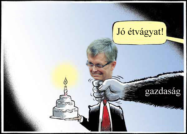 Furcsa szagok terjengenek a kormány gazdaságpolitikai boszorkánykonyhájából. A megpörkölődött arcbőr jellegzetes szaga keveredik az odakozmált gazdaságpolitika bűzével, az örömapa-főszakács ráolvasással igyekszik a lángot kisebb hőfokon égésre bírni, míg leghűségesebb kuktája, személyes jobbkeze éppen kapitulál az általa okozott őskáosz láttán.