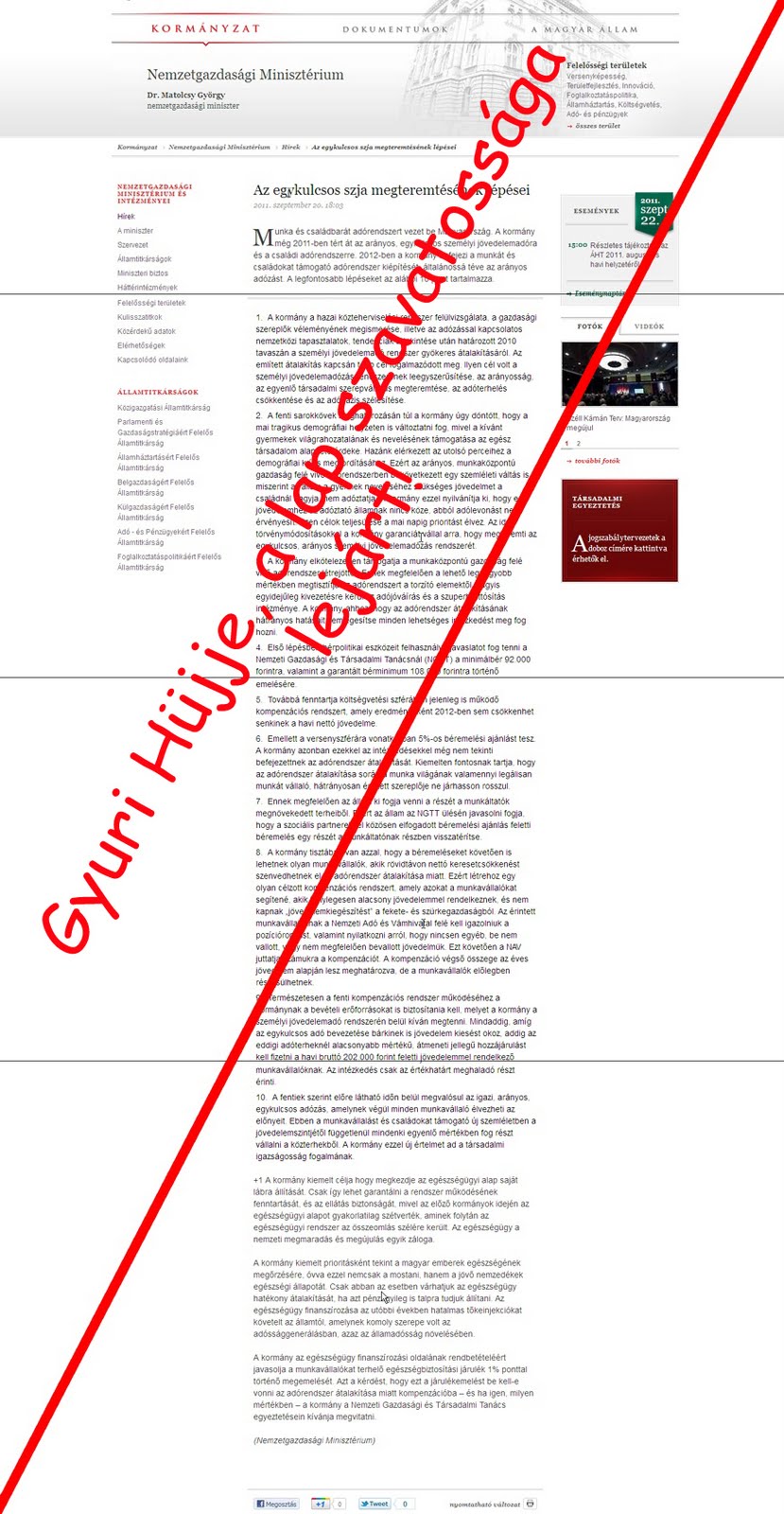 Vadul túrtam ezt a katyvaszt a logika leghalványabb jele után, de nem találtam benne ilyet. A közvélemény bár hangosan temette az egykulcsost, azért hangot adott annak is, hogy éppen ideje volt valamit lépni a jó irányba. Az egyik eddigi legfőbb kritikus Mellár Tamás is azt mondta, hogy bár visszacsempészték a többkulcsos adót, legalább nem viselkedtek ostobán. Erre rá is cáfoltak azonnal, hisz Szijjártó felülbírálta Matolcsyt, és ezzel a kukába vágta az előző nap megírt szívhez szóló nekrológot. Ami bár még mindig kint van a kormány hivatalos oldalán, a tartalma - egyszerűsítünk, kivezetünk, átmeneti hozzájárulás(?) - szavatossága egy nap alatt lejárt.