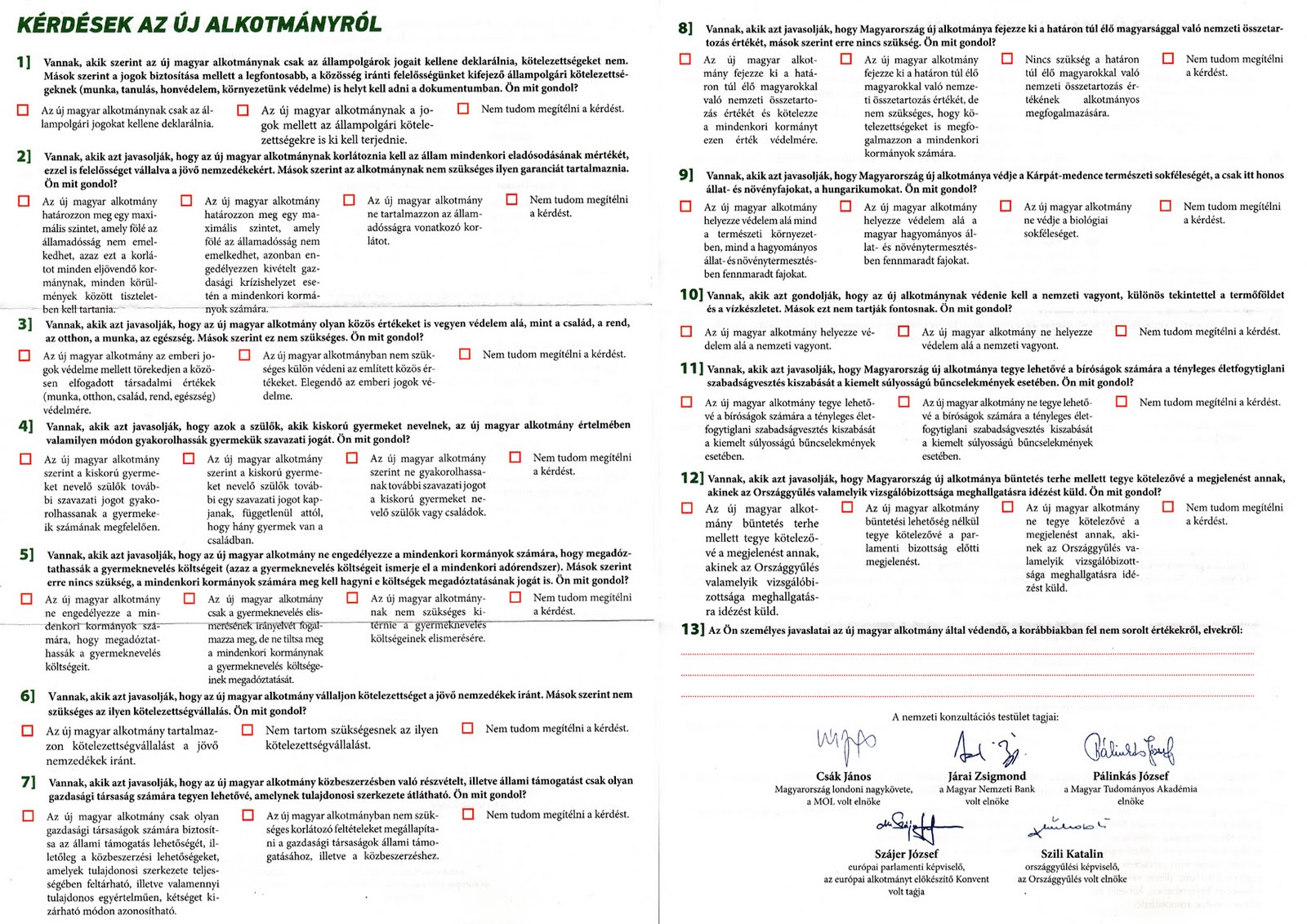 Van egy jó hírem, meg egy rossz: kormányunk megkezdte az alkotmánnyal kapcsolatos, 12 pontos kérdőívek kézbesítését. Ez a jó hír. A rossz, hogy még attól is egyszerűbbnek néznek minket, mint elsőre látszott.