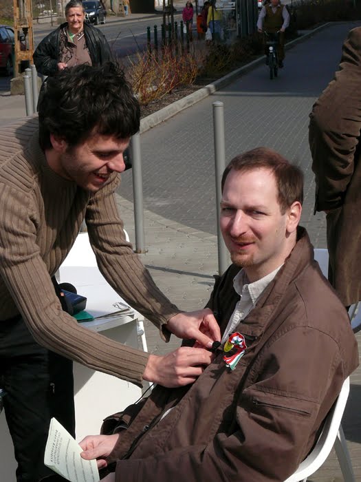 Pesti beszéde után hangulatfokozó sóelemként a Fidesz ügyeletes plakátlánya, Keresztes Ildikó tátikázott két számot, és Körtvélyessy Zsolt mondott verset.