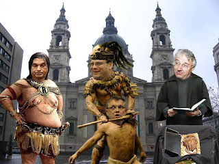 A vezér természetét, és színpadiasságát ismerve nem elképzelhetetlen, hogy a nyárig kibukó elégedetlenségi hullám hatására az idei Szent Jobb körmenet úgy fog kinézni, hogy Matolcsyt körbekergeti az igazhitű törzs a Bazilika körül néhányszor, aztán leteperik, Semjén páter elmond egy imát fölötte - páternoszter, az apád suszter, az anyád varga, te meg egy marha, ámen - és nyilvánosan felpofozzák államalapító királyunk szent jobbjának élethű másolatával.