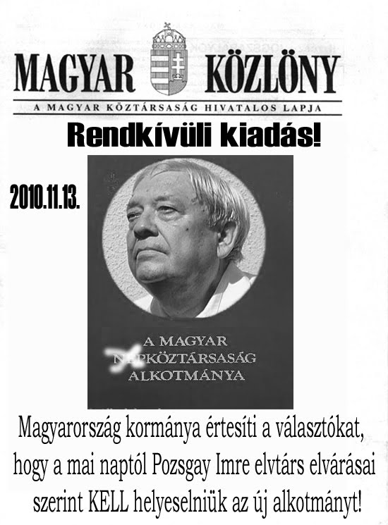 Pozsgay Imre szombaton a Klebersberg Akadémia rendezvényén kifejezte abbéli óhaját, hogy a társadalom ( a gyengébbek kedvéért: a zemberek) helyeseljék az új alkotmányt!