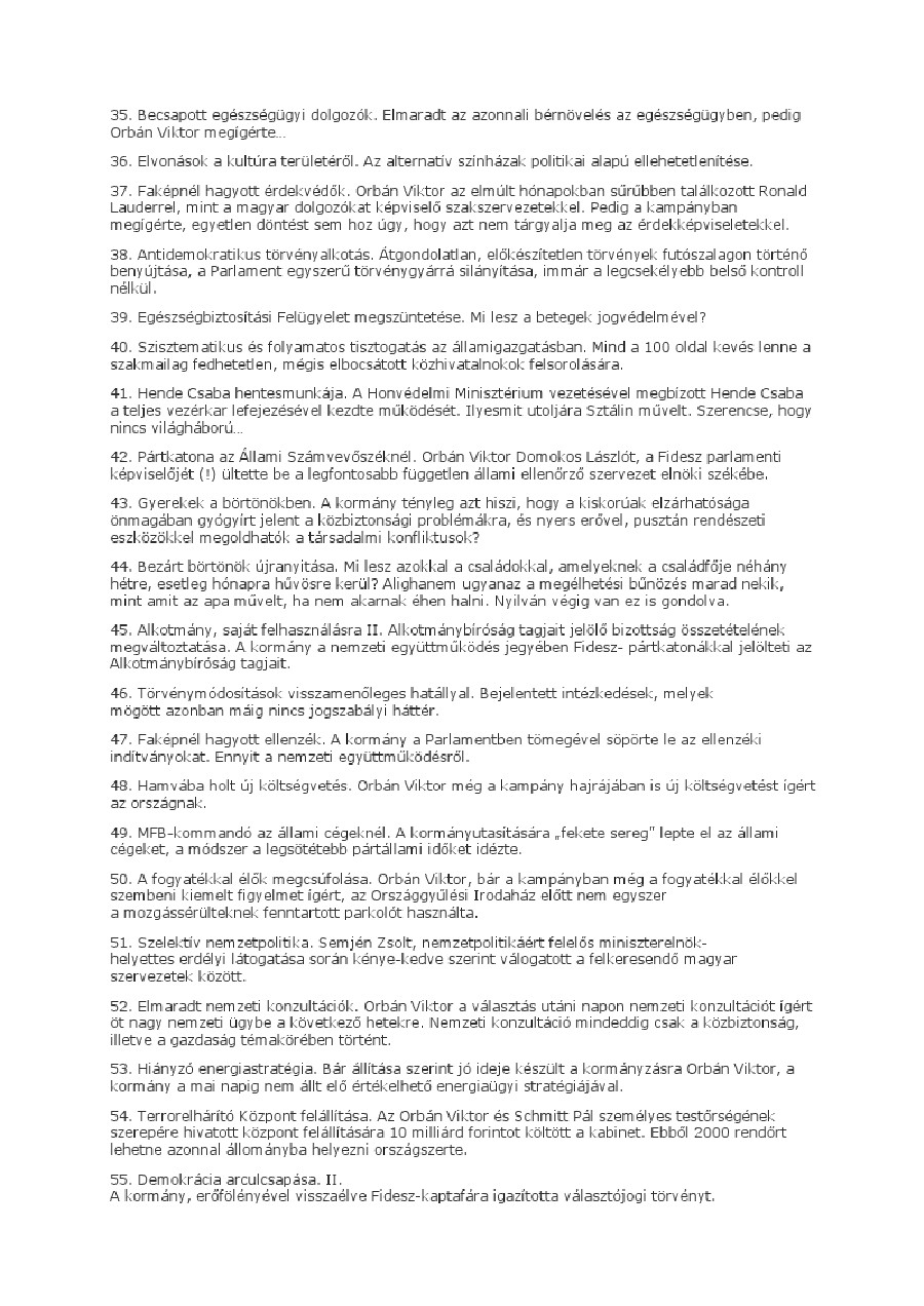 - minden Orbán Viktor neve után tett mosolygós szmájli: 5 pont.