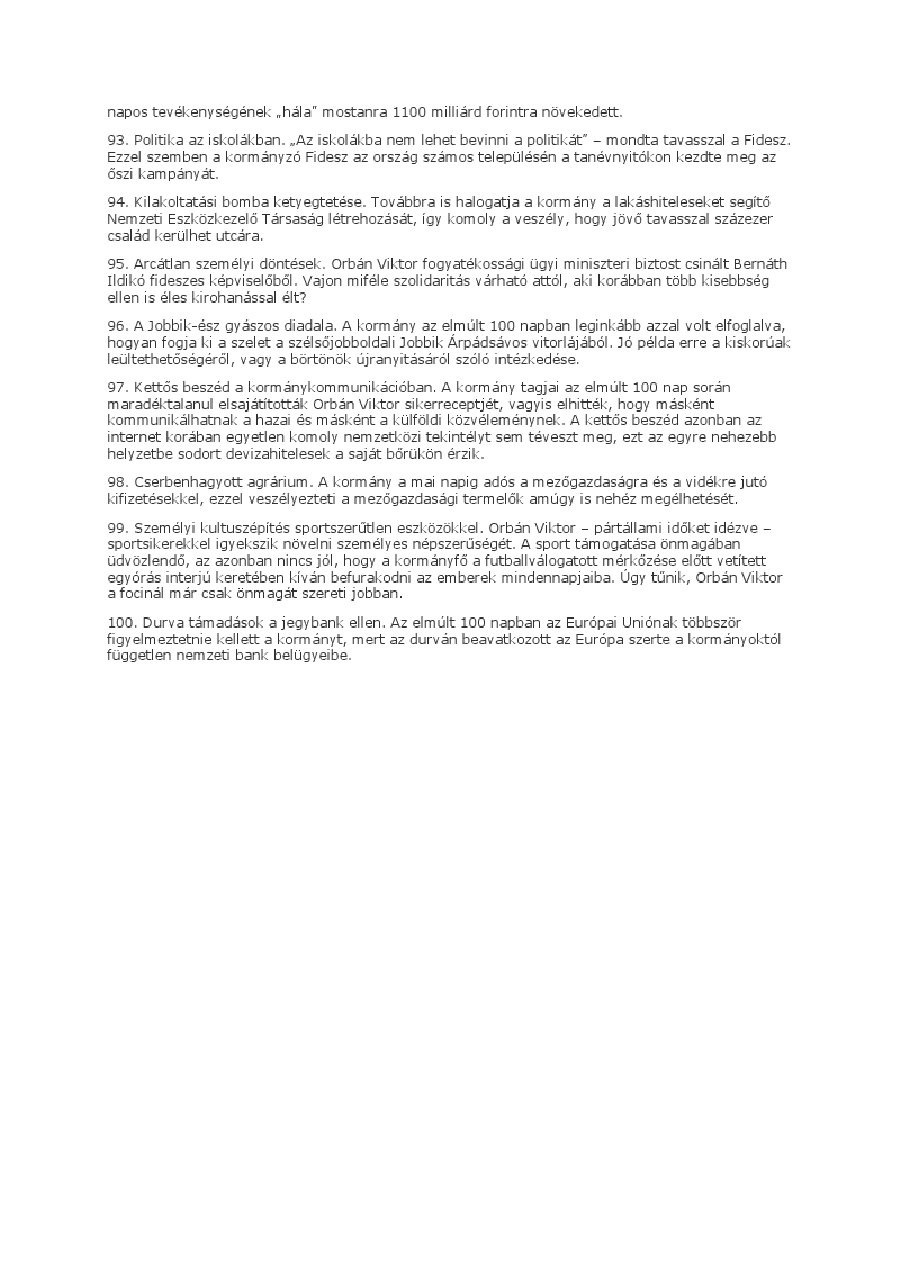 - a cikkíró értelmi képességeinek kétségbevonása, lekezelő stílusban előadott pártpropaganda hangoztatása a mindent tudók megfellebbezhetetlen gőgjével: 3 pont.