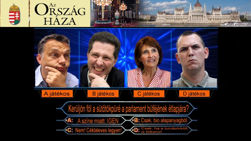 Kaphatnának külön díjat a politikai csatározásokban megfáradt harcosok, azok, akik a celeblét nehéz és fáradtságos útját is járják. Igenis legyenek díjazva a pártért a magánélet rejtelmeit feláldozó Rogán Antalok, a dalnok Schmuck Andorok! A DR. SCHMITT PÁL KÖZTÁRSASÁGI ELNÖK LEHETSZ TE IS KISZEL TÜNDE ÉRDEMÉREM méltó jutalom volna a megfáradt, emberközeli polcelebeknek. Ehhez én nyilván oklevelet is adnék, jusson emlék a sokat tűrő házastársaknak is: