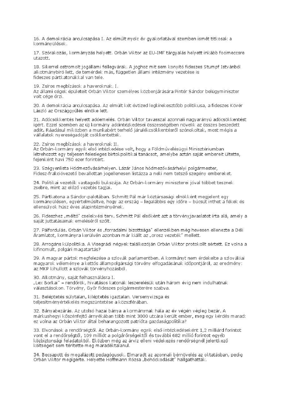 - harmadik pont kiszínezett előadása komcsizással, balliberezéssel és az elmúlt nyolc évre hivatkozással: 4 pont.
