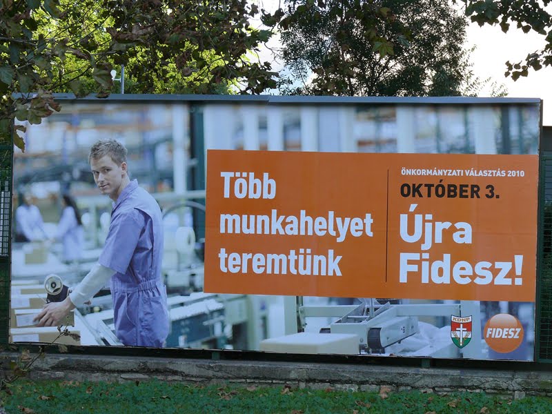Ezek az igazi, általános gumiplakátok. Ezeken már nem, hogy a jelöltek arca, neve sem szerepel. Ennyire mindegy ki indul egy tisztségért? Szavazz a pártra, az arcokkal-nevekkel ne foglalkozz. Minden jó lesz, bízz vakon, október harmadikán újra Fidesz.
