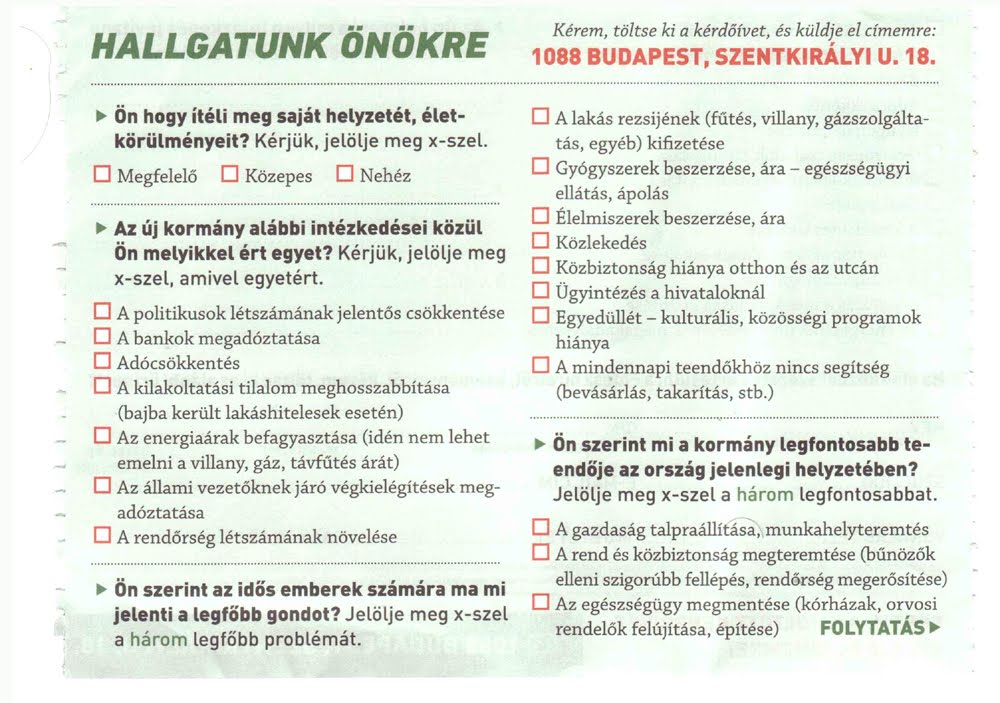 Kísértetiesen hasonlít ez az OGY előtti kommunikációra. Akkor a semmit mondták, és biankó szavazatot kértek. Most a valamit mondják, de a szavazatért megint "majd hozom"-ra szól az ígéret. Pedig egy online parlament alapból tényleg nem rossz ötlet. A civilek, társadalmi szervezetek, egyházak számára véleményezhető törvényjavaslatok nyilvános vitája rögtön képet adna egy adott téma társadalmi elfogadottságáról vagy elutasítottságáról. A választópolgár első kézből és hiteles forrásból értesülhetne a tervezett változásokról, és azok indoklásáról. Úgy érezhetné a rendszerváltás óta először, hogy valóban köze van a törvényalkotáshoz. Ráadásul haladó, trendi, és elég webkettes volna az ilyen-olyan online közösségeknek is.