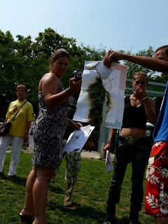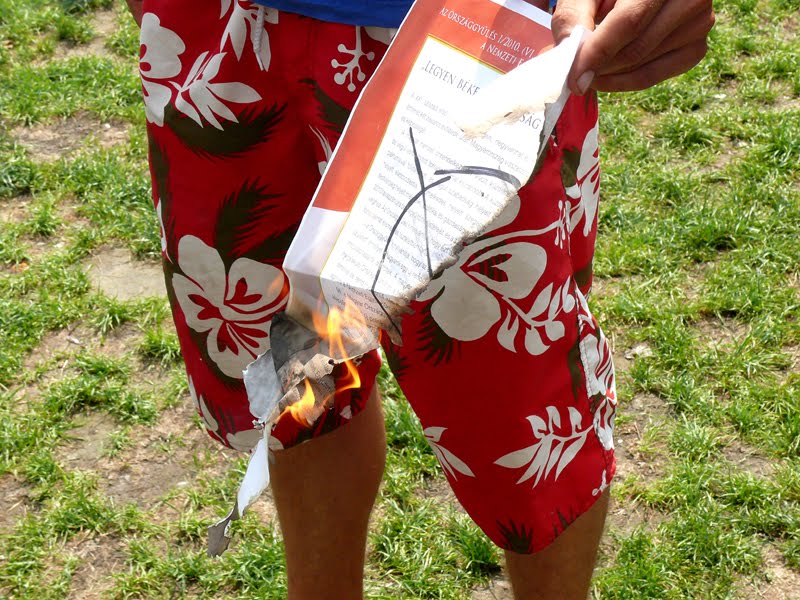 Sehol egy konfliktus, egy beszólogatás, az embernek olyan érzése volt, mintha egy szeletnyi Európa költözött volna a pillanat vagy a délelőtt erejéig Zugló közepére. Parolák és beszélgetések mindenkinek ízlés és szimpátia szerint, mi is rögtönöztünk egy mini blogtalit. De nem Magyarországon lennénk, ha ez tovább tartott volna egy pillanatnál.