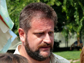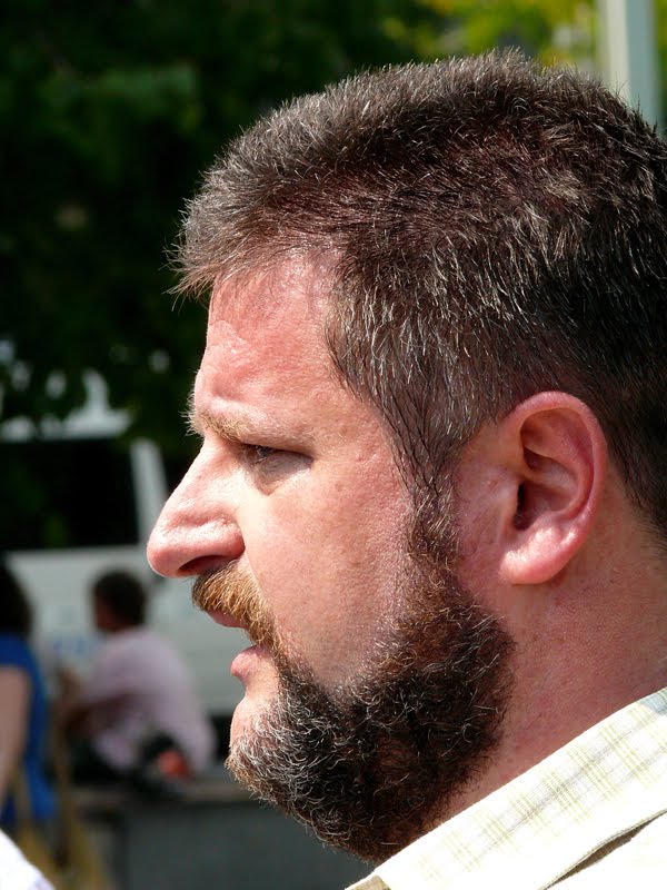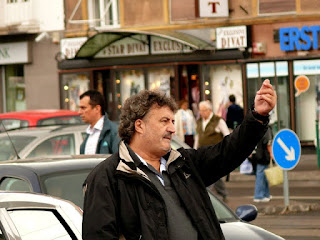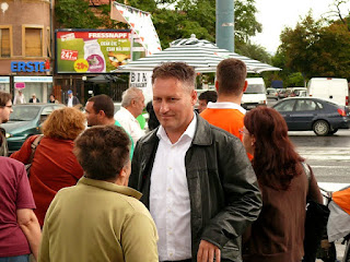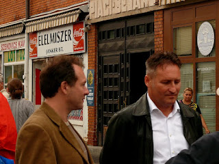 A kísérő stáb egyik tagja nekem ugrott, hogy höhőőő! Janicsákot nem fotózzuk apukám! Előbb mulatságos volt, hogy indoklásnak a mert csak, mert én nem engedem volt az indok. Magamban felröhögtem, hogy ezek szerint jogdíjas volna a jelölt úr fényességes arcképe? De aztán a bohóc felbosszantott a fenyegetőzésével, miszerint ő jogász, Janicsák meg éppen nem közszerepel hanem szigorúan maganemberkedik a kamerának pózolva. Ahha. Aztán az erőlködés érdekes fordulatot vett, mikor megemlítettem, hogy én meg blogger vagyok azon a blogon, ami a nyálával öl. Megítélésem szerint Janicsák éppen közszerepel közterületen, én meg lefotózom jól akkor is, ha ez neki nem tetszik. Hadonásszon nyugodtan a gépem előtt, legfeljebb megírom mit keres a képen a hadonásznyik tenyere. Így elkészülhetett ez a kép, belelógó tenyér nélkül: