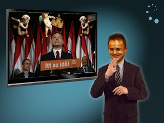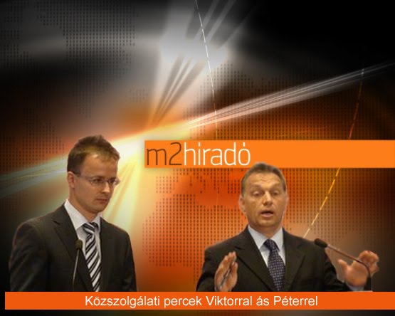 Megújul a híradó is. Új arculat, új arcok, igazgyöngy tisztaságúra mazsolázott hírek. Hírolvasó bemondó - ki más - Szijjártó Péter, műsorvezető Orbán Viktor:
