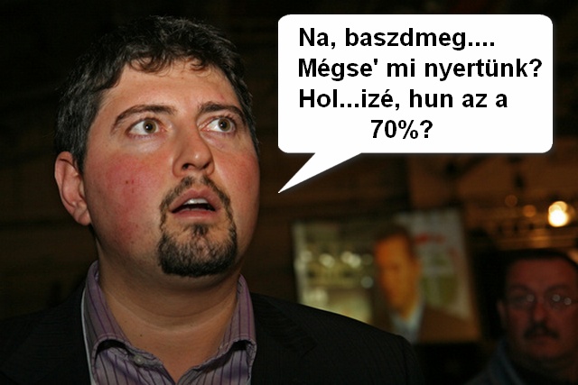 Napközben a Jobbiknál is furcsa víziók kísértettek. Felmerült bennem, hogy egykori szóvivőjük hagyatéka ott tenyészik még valahol hátul a kertben. Az elért eredményük számomra nem meglepő, nagyjából ezt vártam. Mikor azt olvastam egy gárdista mondandójából idézve, hogy szerinte választási győzelmet és 73% -is elérhetnek, azon még csak kacarásztam. Hiszen jellemzően nem atomfizikusok öltöznek pingvin jelmezes oroszlánszelídítőnek. De aztán Vona Gábor kijelentette, este nem ők hordanak aranyat, tömjént és mirhát a Vörösmarty téri jászolhoz, hanem fordítva, és különben is, a magyarok kétharmada Jobbikos, csak még nem tudnak róla. Gondolom ezért csodálkozott el Szegedi Csanád is ennyire az eredmények láttán: